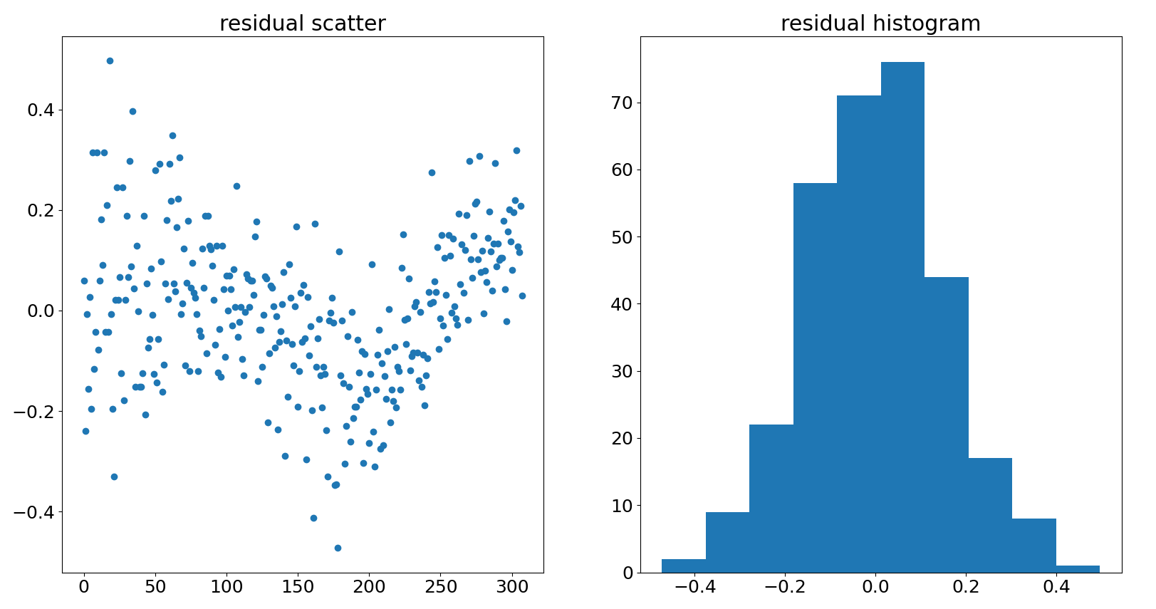 The histogram on the right subplot is roughly symmetric and does not look too skewed. Note that there is no objective quantitative method for doing residual analysis. It is entirely subjective!