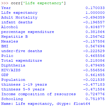 I am using a set of data from this kaggle webpage. Quoted from that page : the data was collected from the WHO and the United Nations website with the help of Deeksha Russell and Duan Wang.