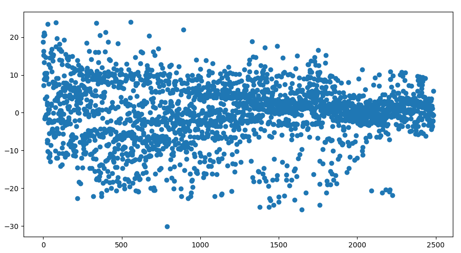 The residual errors are plotted below. Note that \( Y \) has already been sorted from smallest to largest in a previous step.