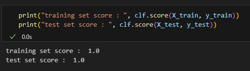 Note that just having zero, or close to zero, error for the training set is not a sign of overfitting. For example, the double descent phenomenon is the observation that large complex machine learning models can achieve zero, or close to zero, error on training data, while still achieving similarly low errors for test datasets. There is also always the case of perfect separation, which will be illustrated below.