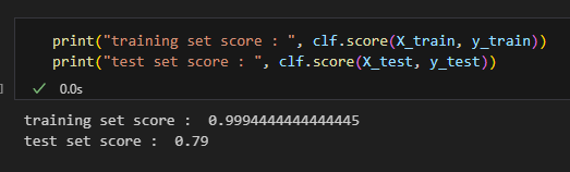 The model has lower training set error than test set error. That is, the model is very well fitted to the training dataset but this performance does not generalize to the test dataset.