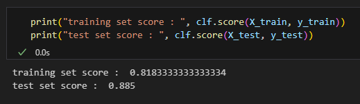 The mean accuracy on the training set decreased but increased for the test set. Like we expected, reducing the max depth parameter from 10,000 to 2 fixed the overfitting problem and made the resulting model more generalizable. By random chance, the test set actually has a higher score.
